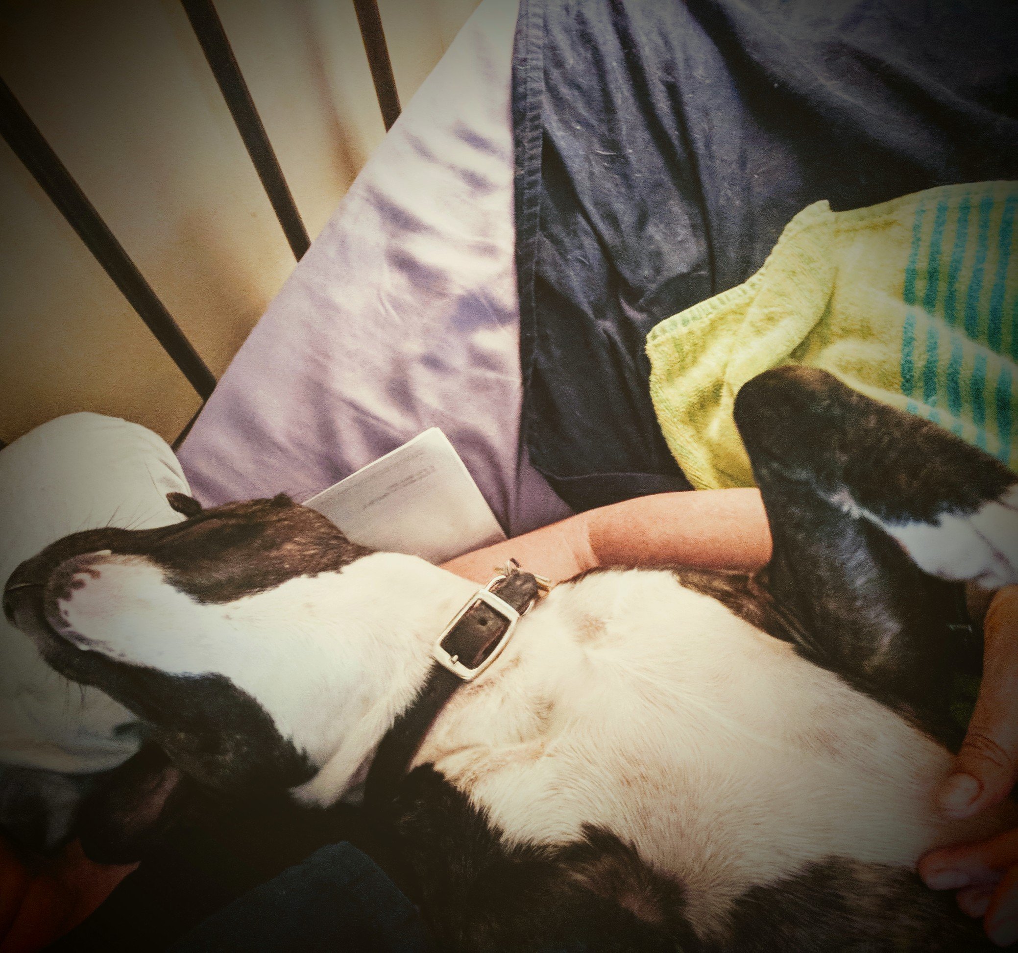 I’m in the process of adopting a dog. He’s incredibly sweet and loves affection. He’s my personal trainer, getting me to walk farther and more often. He’s a goofball antidepressant and a good boy.