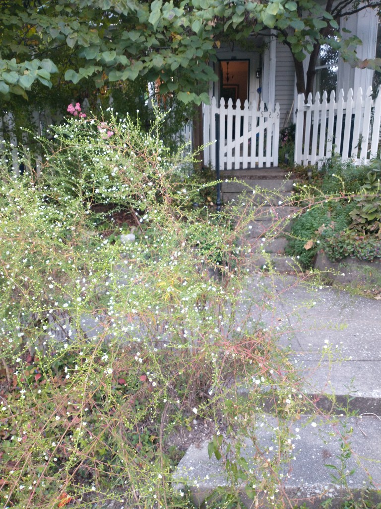 I did not at first understand this. The first time I was cited, in Lexington, for planting obstructing the sidewalk or some such, I freaked out. If stuff I’d planted was in somebody’s way, why didn’t he — if he was terrified of meeting the ogress who’d planted such monstrous, thorny, fragrant-flower-bearing brambles — why did he not just leave a note on my porch? It was only ten steps from the sidewalk.