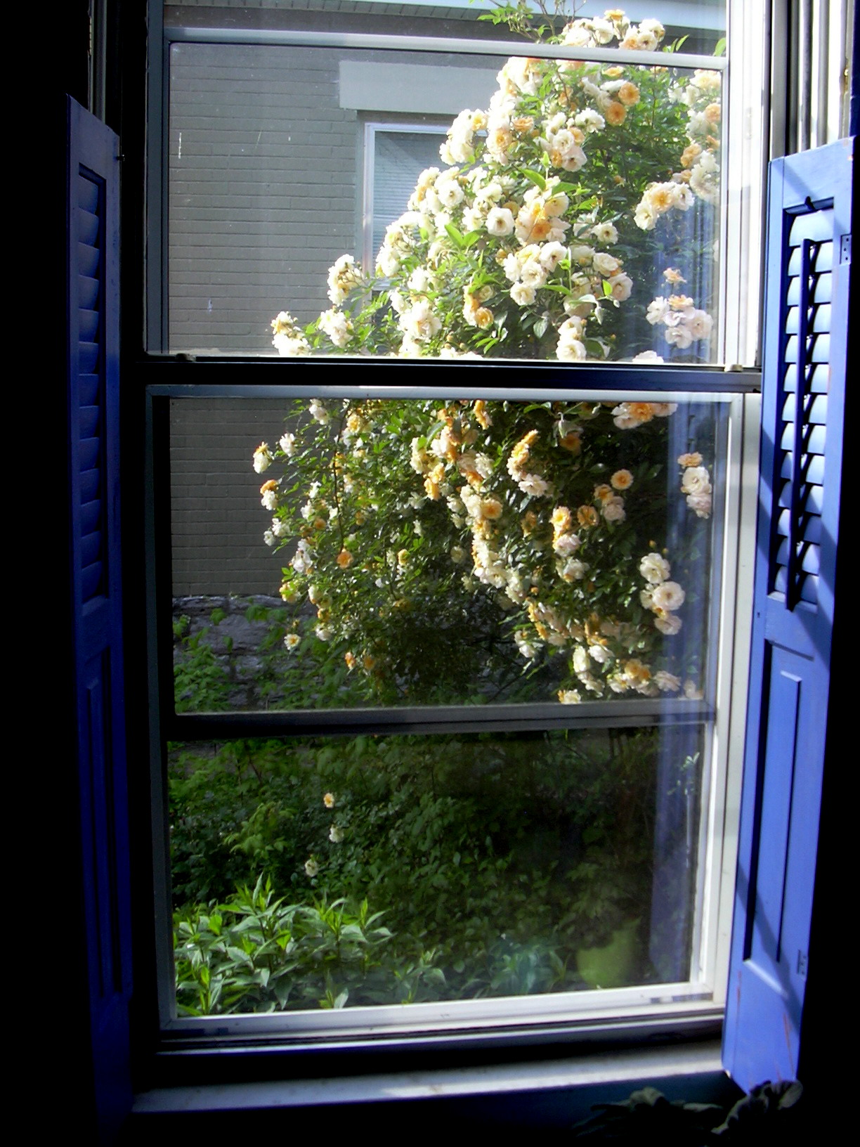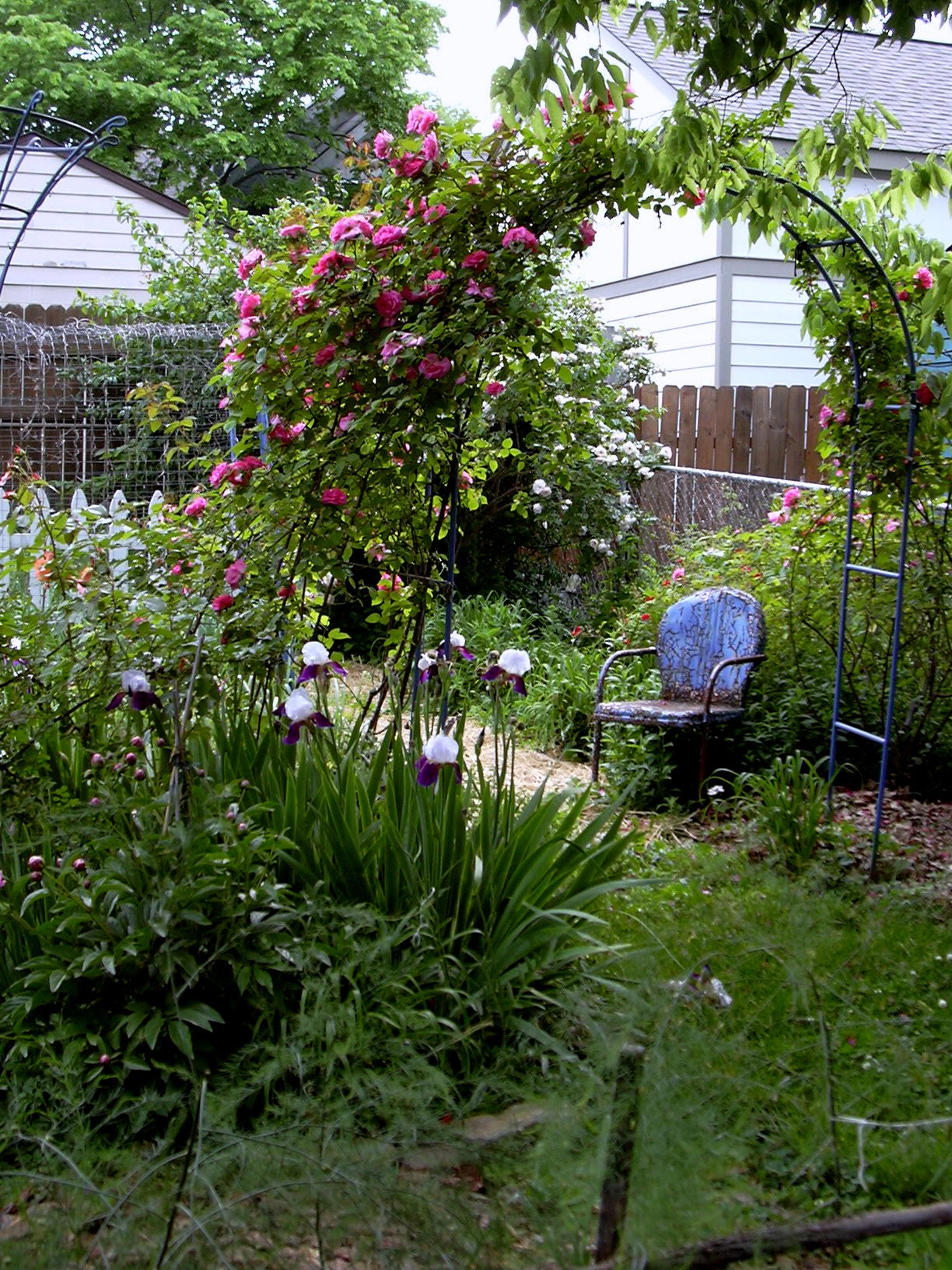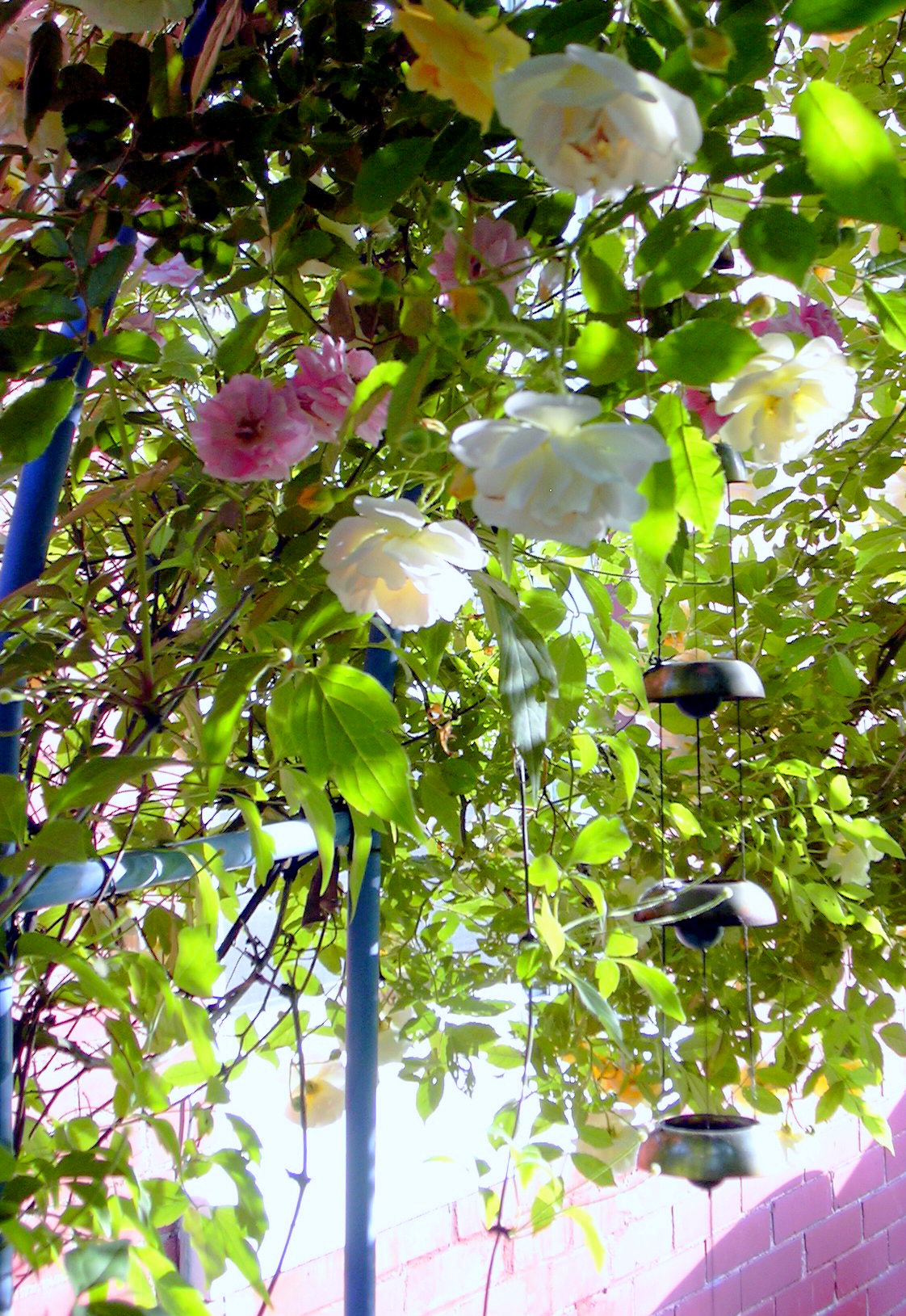 Reve D’Or looking down from arch next to the compost pile. This is such a great rose and has withstood much abuse. It’s so far from the house I didn’t supplemental water it at all as it was getting started, and it’s gotten so lovely.