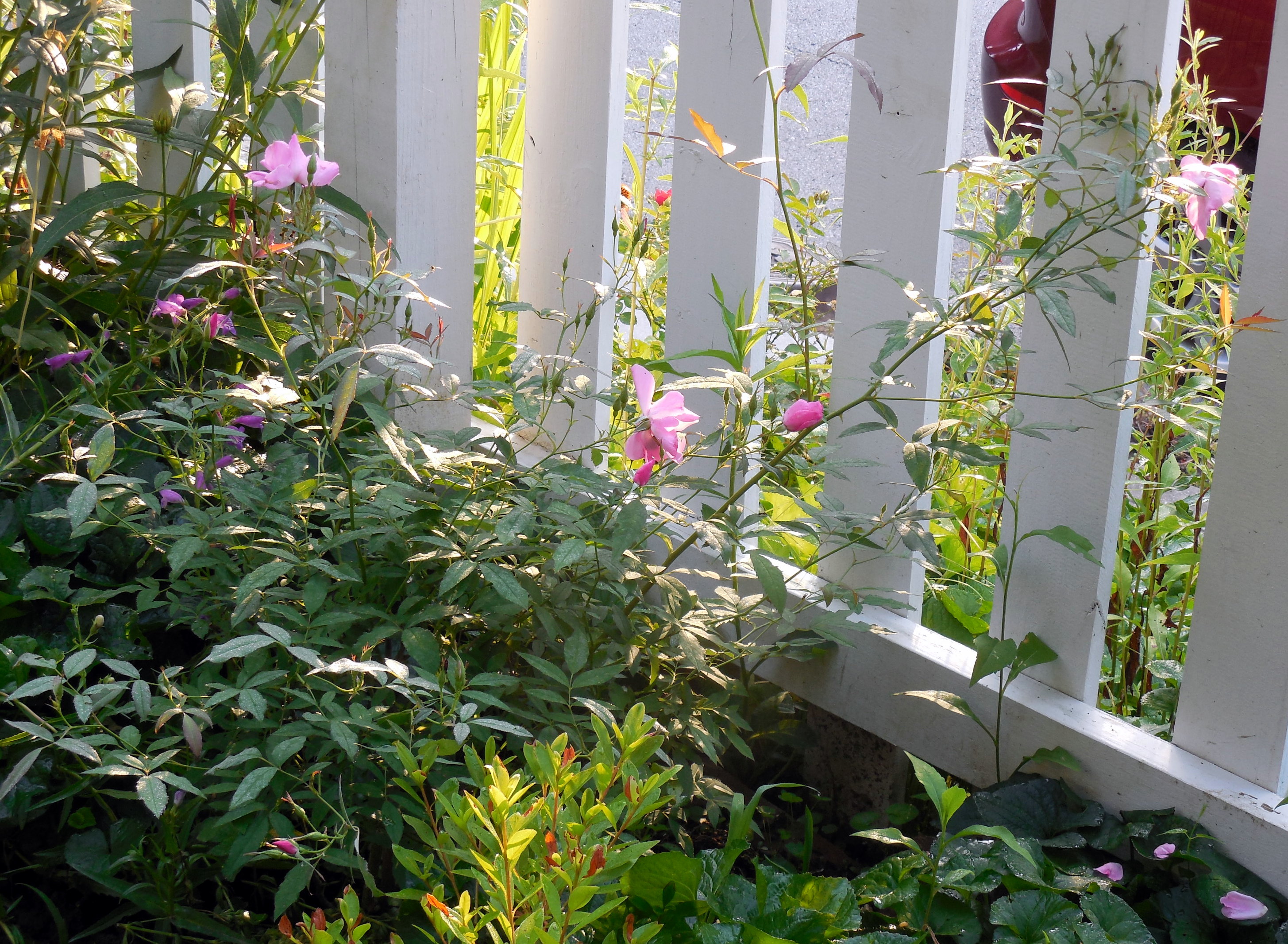Hey, I’m glad you asked. My “repeating” swamp rose not only repeats, but it was never without a flower until just now when we got our first frost here in Central Kentucky, which is really unusual in a rose’s first growing season. I’d have to call it everblooming. Over the season it built up to about 3’x3′ and kept its globular though airy form, no black spot or August leaf drop. It’s beautiful, and I am charmed. You’ve reminded me to cut a few twigs to see if I can’t start some more plants of this one: I will feature it as prominently as I can in my space.