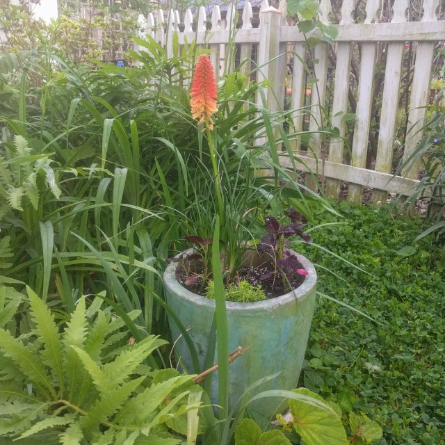 I found it yesterday: a Kniphofia, I believe, perennial known as red hot poker.