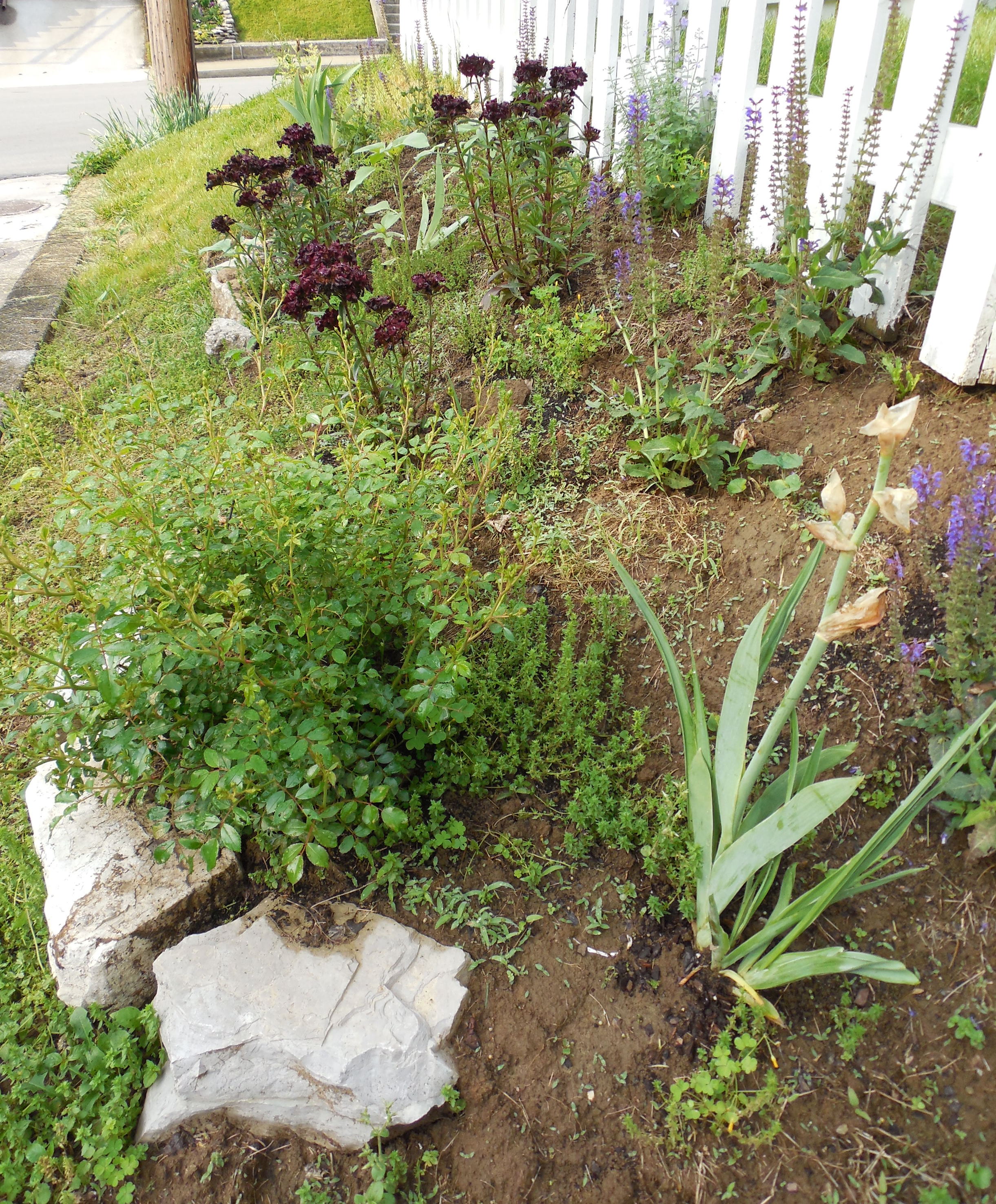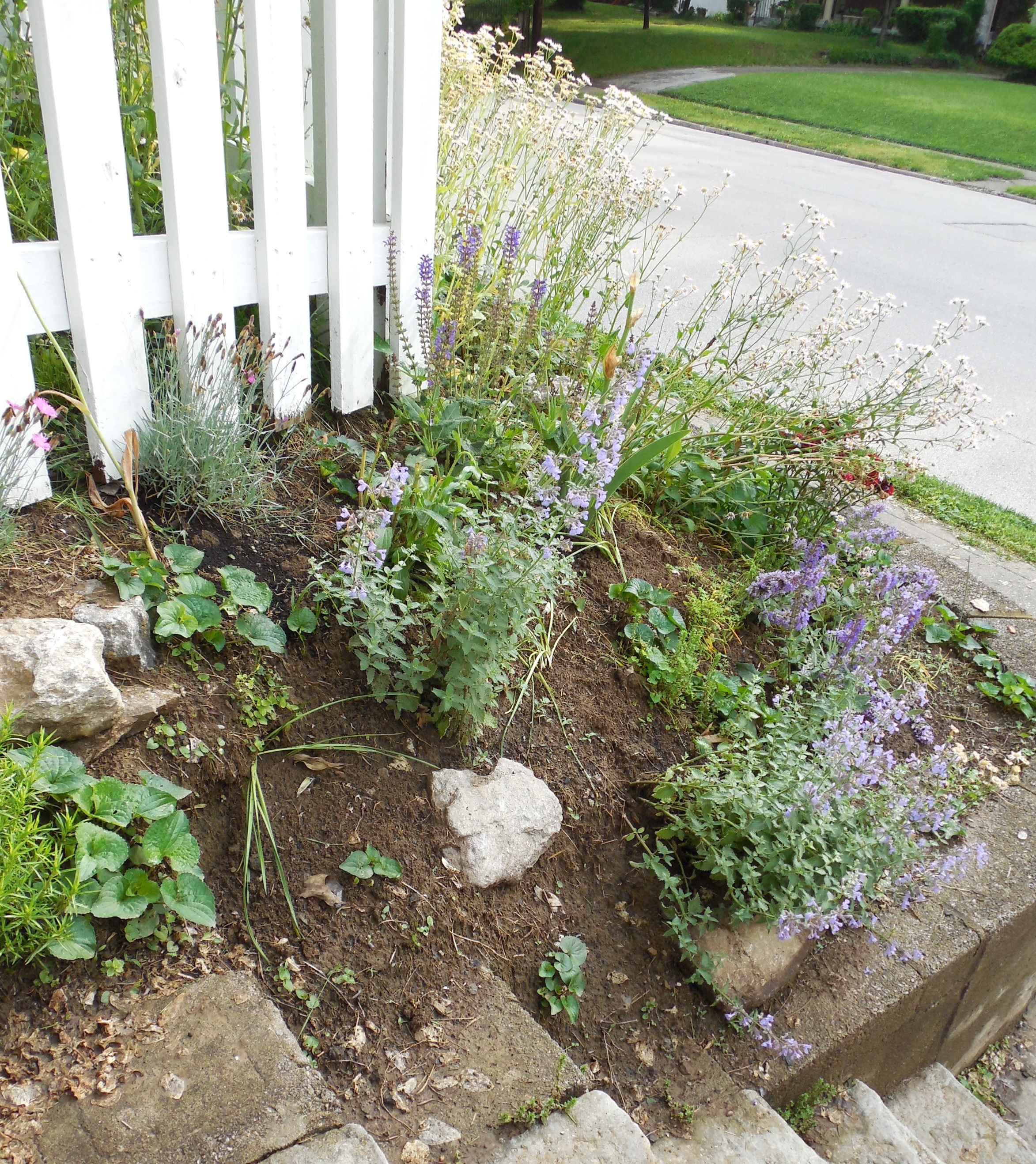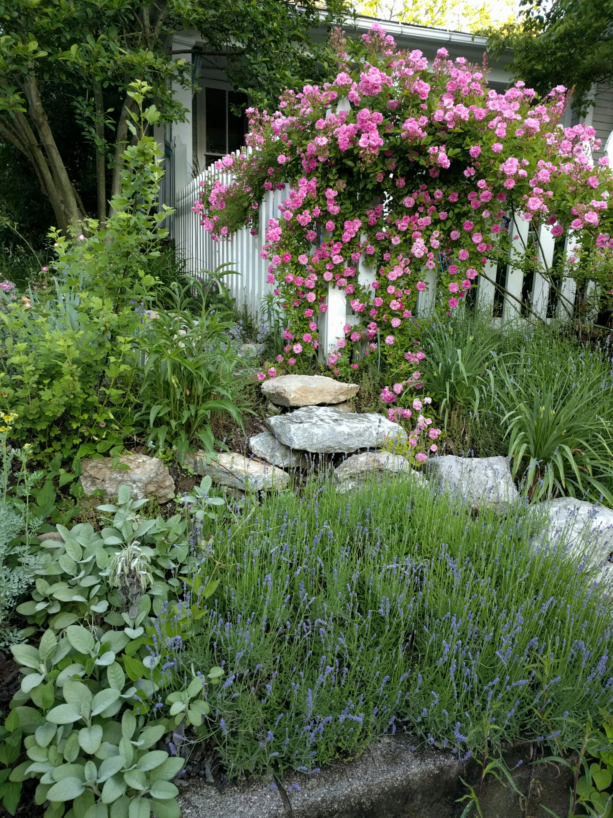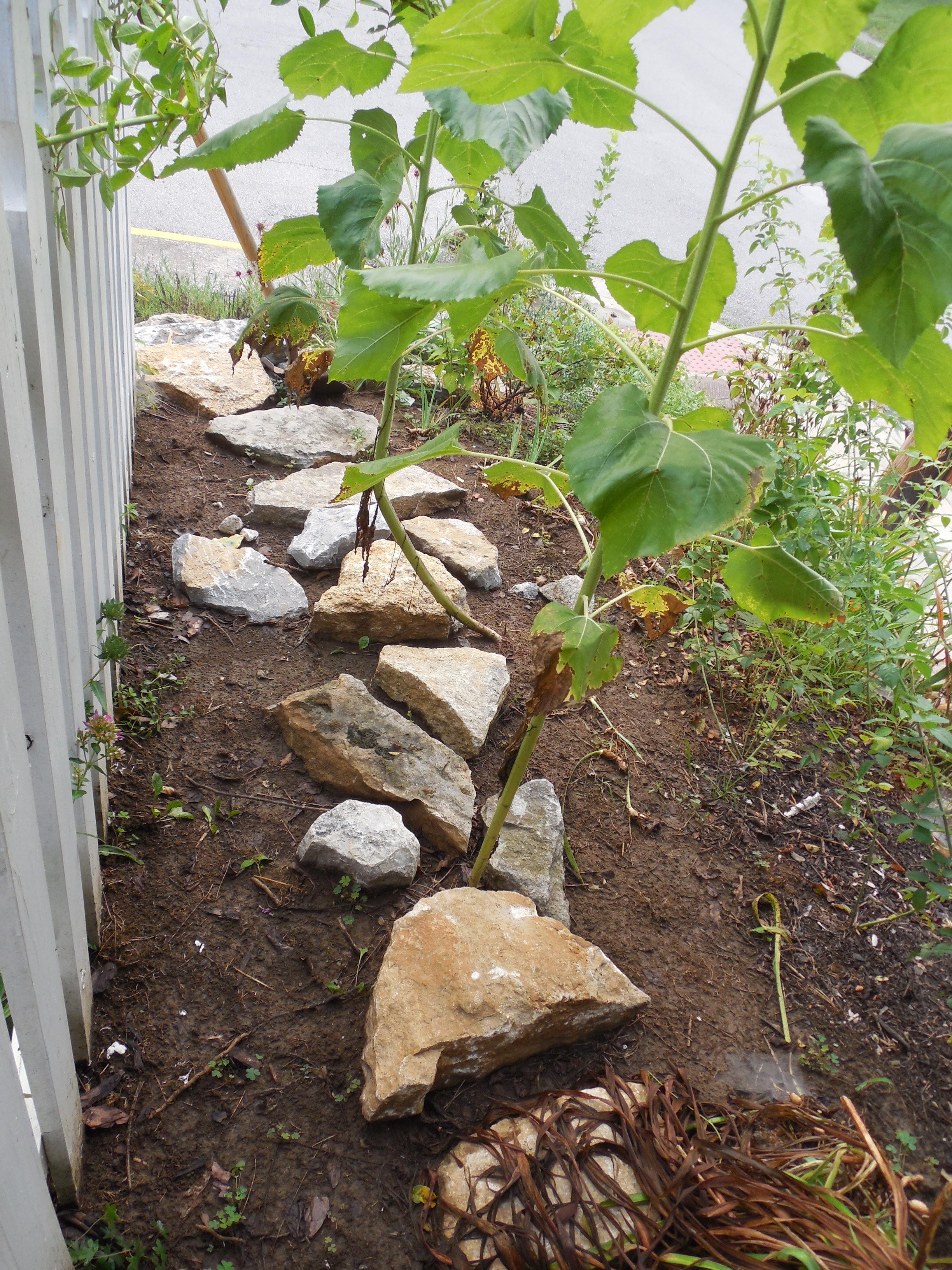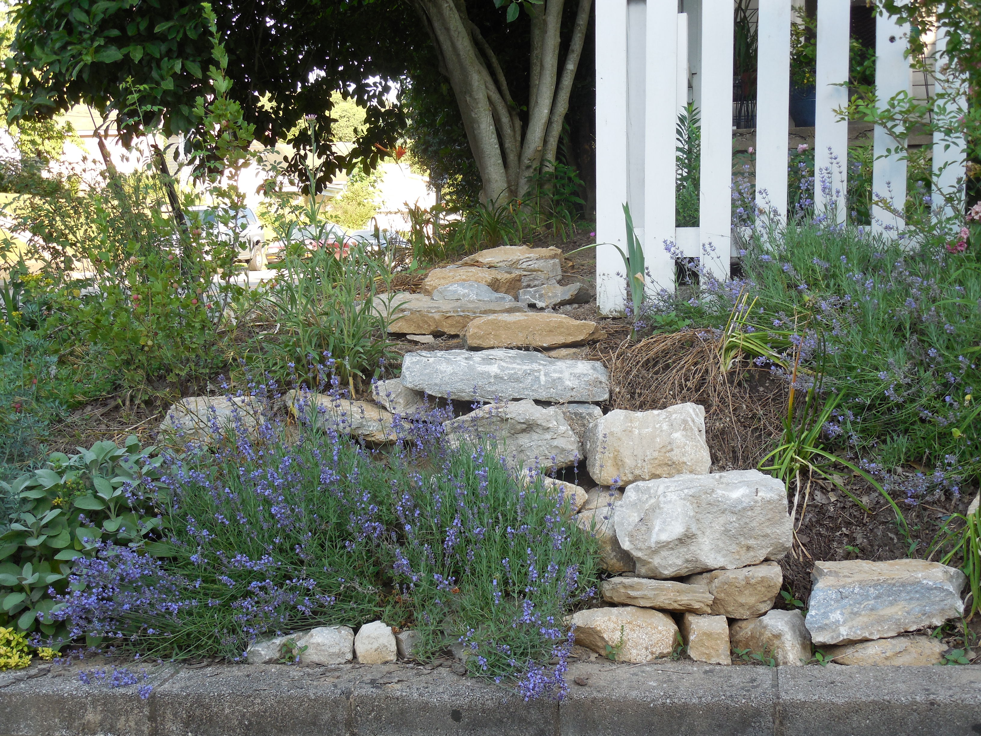 The stones up that 45-plus-degree slope are so solid I can walk up them like steps. I walk up and down them many times a day when I’m out there gardening.