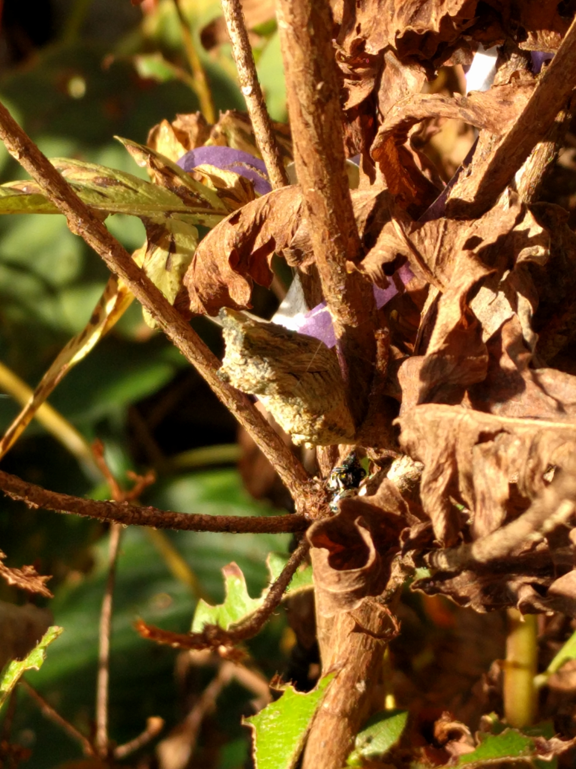 Now he has developed his protective coloration and blends in better with his surroundings. I’m assuming that he will overwinter as a pupa.